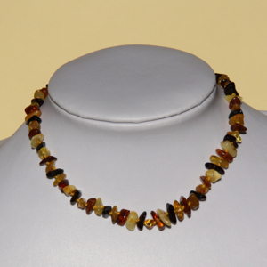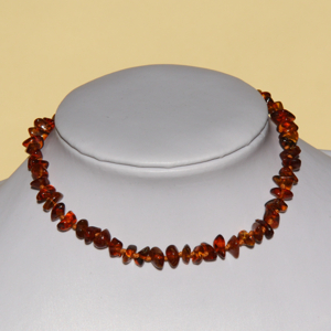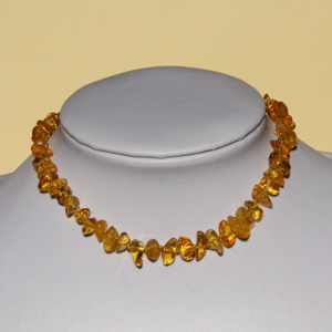 Collanina d’ambra. Chiusura a vite e nodo tra ogni grano.